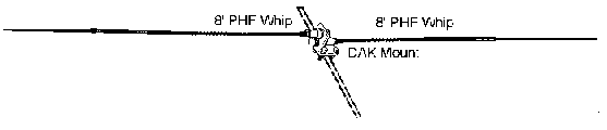 If you plan to operate on more than one band, you will need separate MicroDipolesTM for each band. You may mount several MicroDipoles on a single mast (6" to one foot apart). Feed each with a separate coaxial cable. There may be some interaction between the antennas. However, it is convenient to have all bands of interest available without having to leave the operating position to change whips. If the MicroDipoleTM is accessible, use 'Quick Disconnects' to simplify changing the elements when switching bands. With 'Quick disconnects,' a band change is simple. |