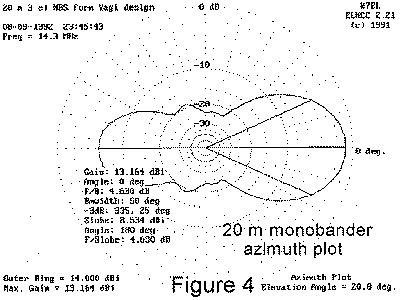 Referring to figures 1 and 3, the difference in signal strength between the two antennas is only about 6 dB under ideal conditions. Ideal conditions? That would mean that with a dipole oriented east-to- west, the DX station's signal had to arrive at around 20· and its direction must be due North or South. If the DX station was located to the East or West, the difference between the dipole and the beam at a low takeoff angle could be as high as 20 dB as seen in figures 2 and 4. At all other directions, the difference would be between -6 dB and -20 dB, perhaps more. These figures are for a takeoff angle of 20·. Choose a less than optimum takeoff angle for the dipole and the results would be far worse than -20 dB. So, we have part of the answer. The well defined, low angle radiation pattern of the beam combined with rotatability gives the beam a 'real life situation' advantage well over the 8 dB textbook figure. The only time the predicted 8 dB difference is observed is when the takeoff angles and directions are ideal for the dipole. It's a 'hit-or-miss' situation. The well defined, low angle radiation pattern of the beam combined with rotatability gives the beam a 'real life situation' advantage well over the 8 dB textbook figure. |